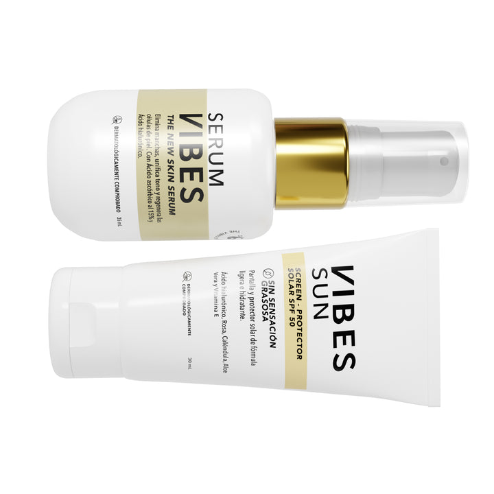 Si hablamos de despigmentación es importante que uses nuestra vitamina C, tiene ácido ascórbico al 15% con tecnología liposomada que ayuda a unificar el tono de piel y a eliminar las manchas por su alta capacidad de regeneración, pero también debemos prevenir manchas futuras con nuestra pantalla solar, que también tiene agentes que ayudan a renovar la piel de los daños ya causados por el sol, unificar la piel y prevenir el envejecimiento prematuro.