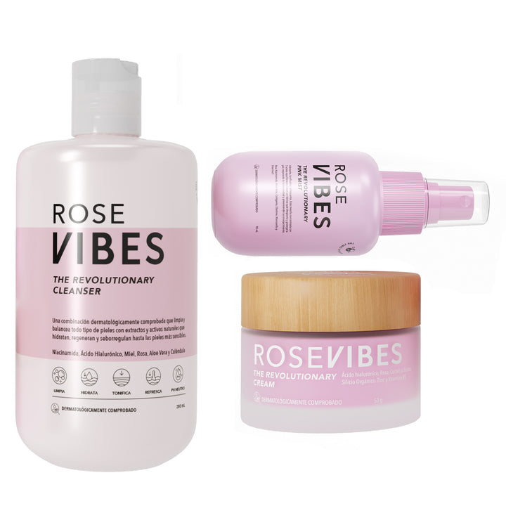 Limpiar sin resecar, tonificar para regular el ph y humectar son tres de los pasos imprescindibles para tener cambios en tu piel y están todos incluidos en este combo. Cargados con todos los beneficios de la rosa, nuestro limpiador, tónico y crema humectante transformarán tu piel y se convertirán en tus infaltables.